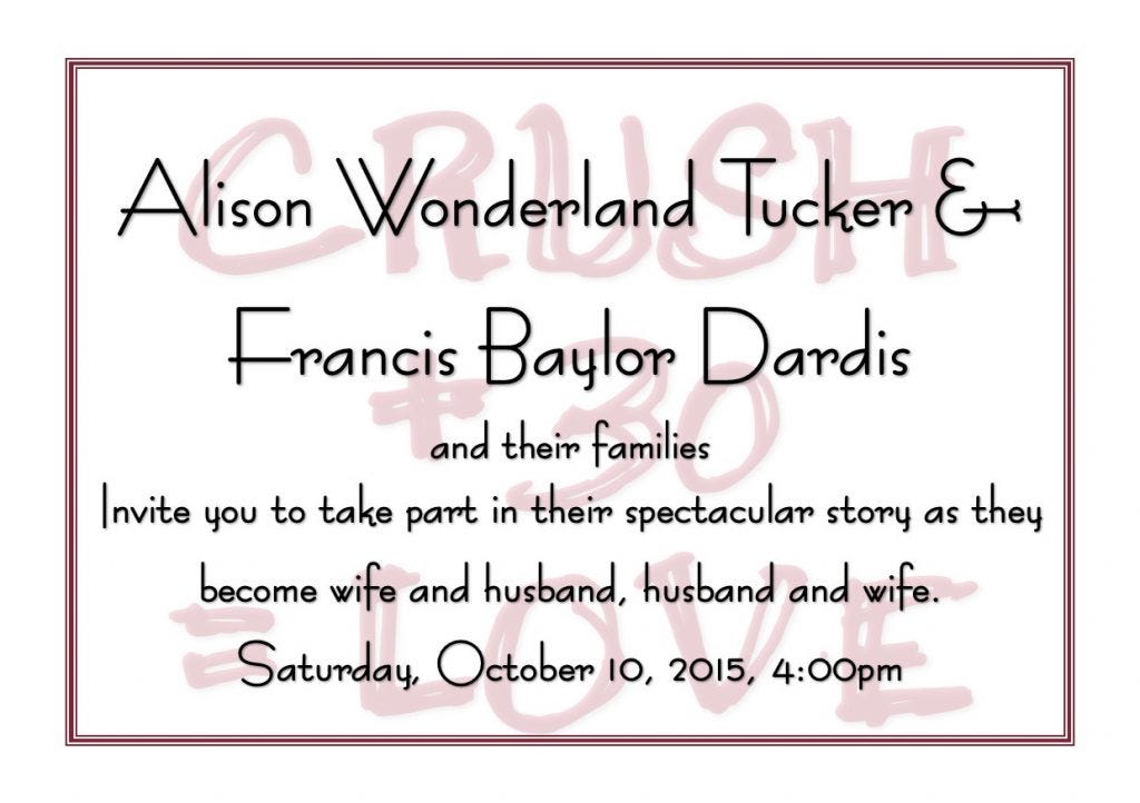 Here’s a secret: my vows had been written before Francis had even proposed. For months and months, I had words crawling into my head as I slipped into the cloudy pocket between awake and asleep. I couldn’t explain it, but vows were forming beyond my control. There were things I wanted to say to Francis—things he needed to know. We weren’t even really on the marriage path, but these damn vows kept writing themselves in my head.
