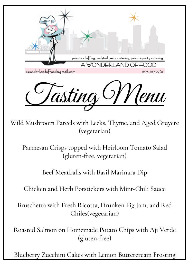 Luckily, I don’t get asked to cook a lot of pre-party food tastings. They are a loss leader for me, and a pricy time-suck for clients, so I’m grateful that most people trust the numerous client testimonials on my Google and Yelp listings.